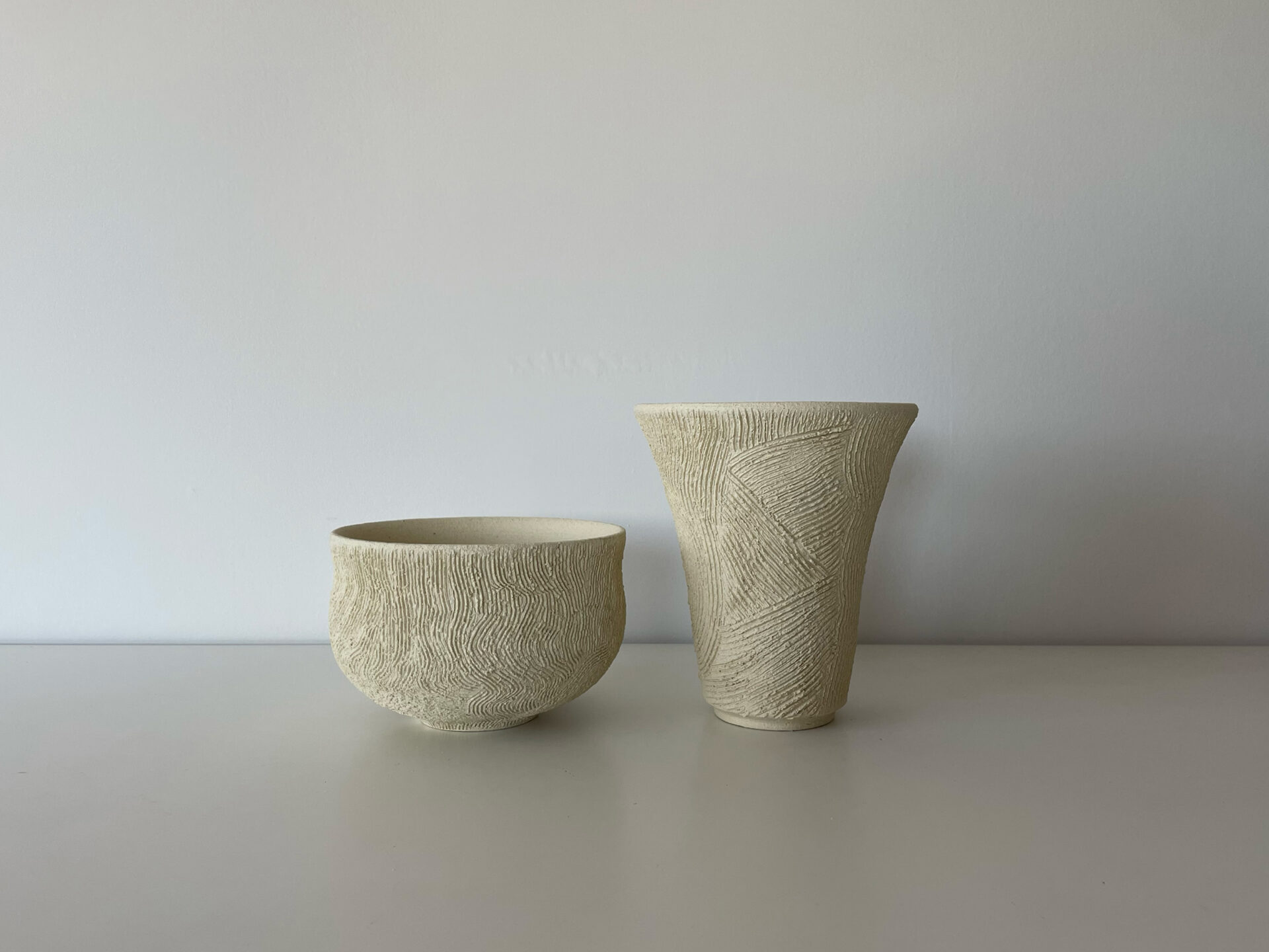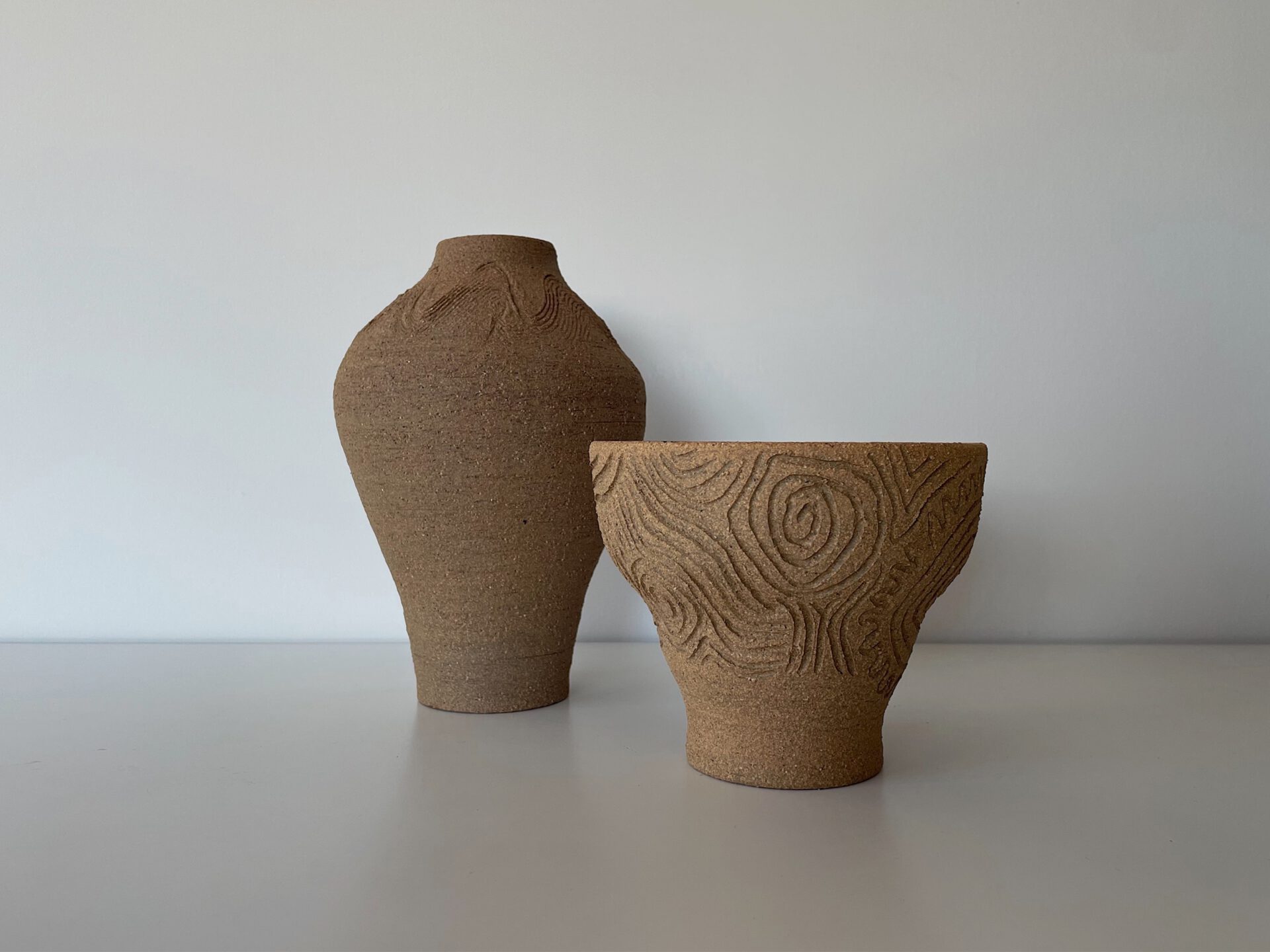 I primarily use the wheel-throwing technique, but in recent years I’ve also begun experimenting with slab construction, exploring new forms.